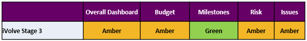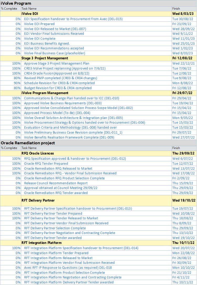 · Change Request CR03 was approved. This adjusted the iVolve timeline to cater for key resource issues and changing the iVolve procurement approach from an RFT to an EOI. Two key deliverables were also changed:
