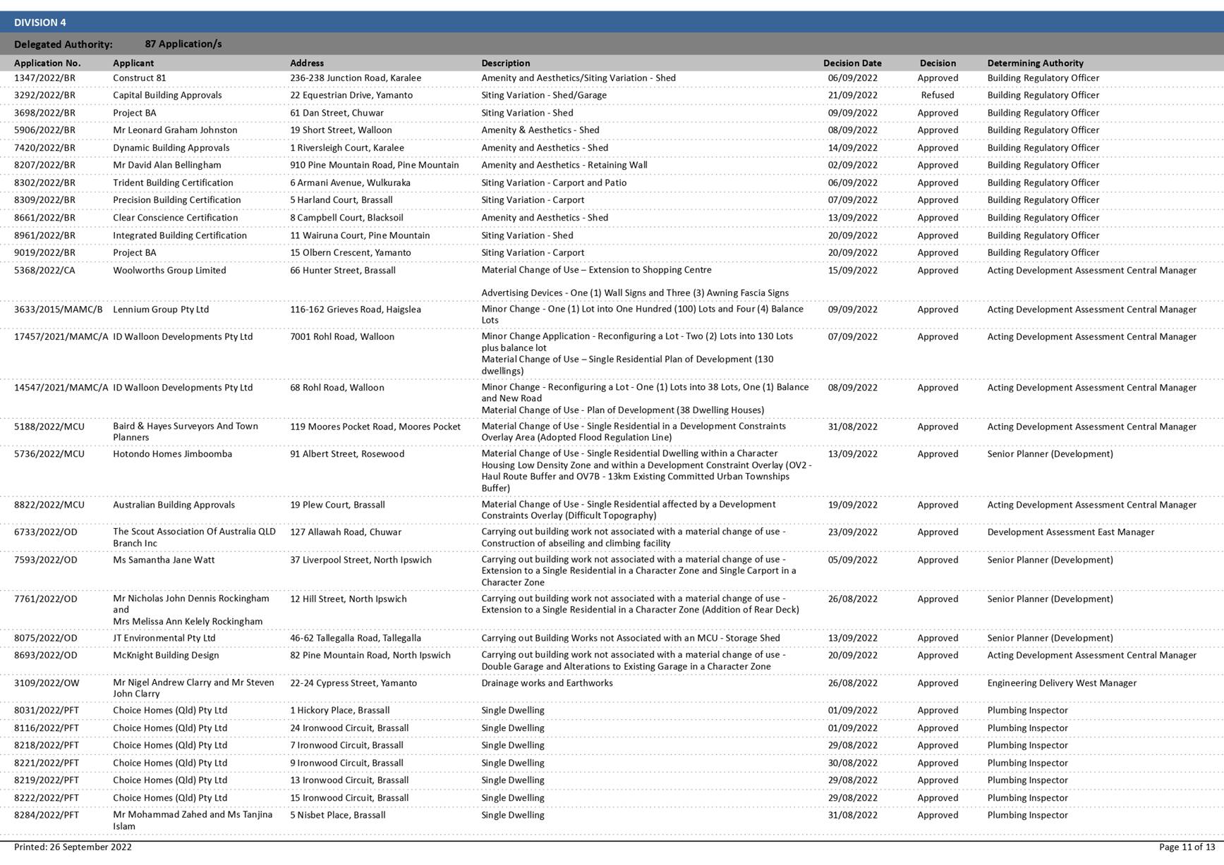 This is a report concerning applications that have been determined by delegated authority for the period 26 August 2022 to 26 September 2022.