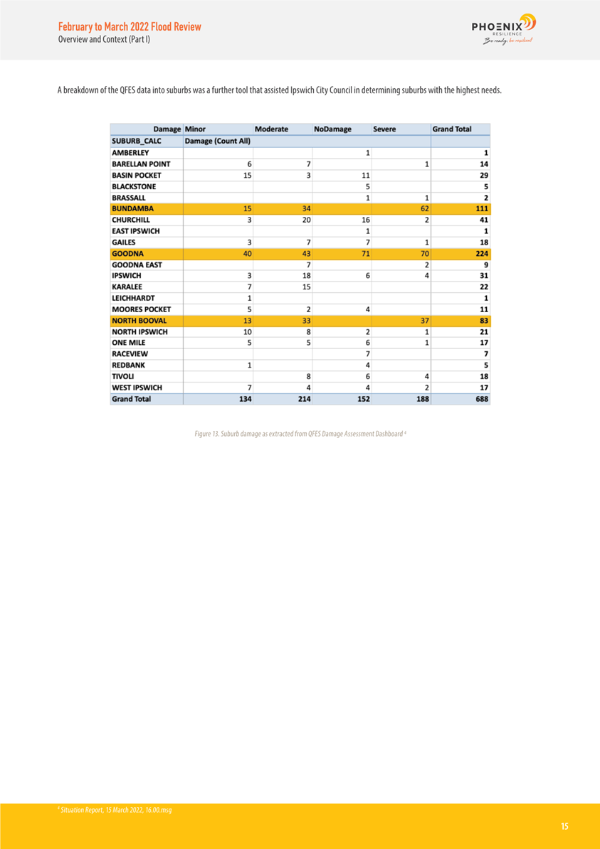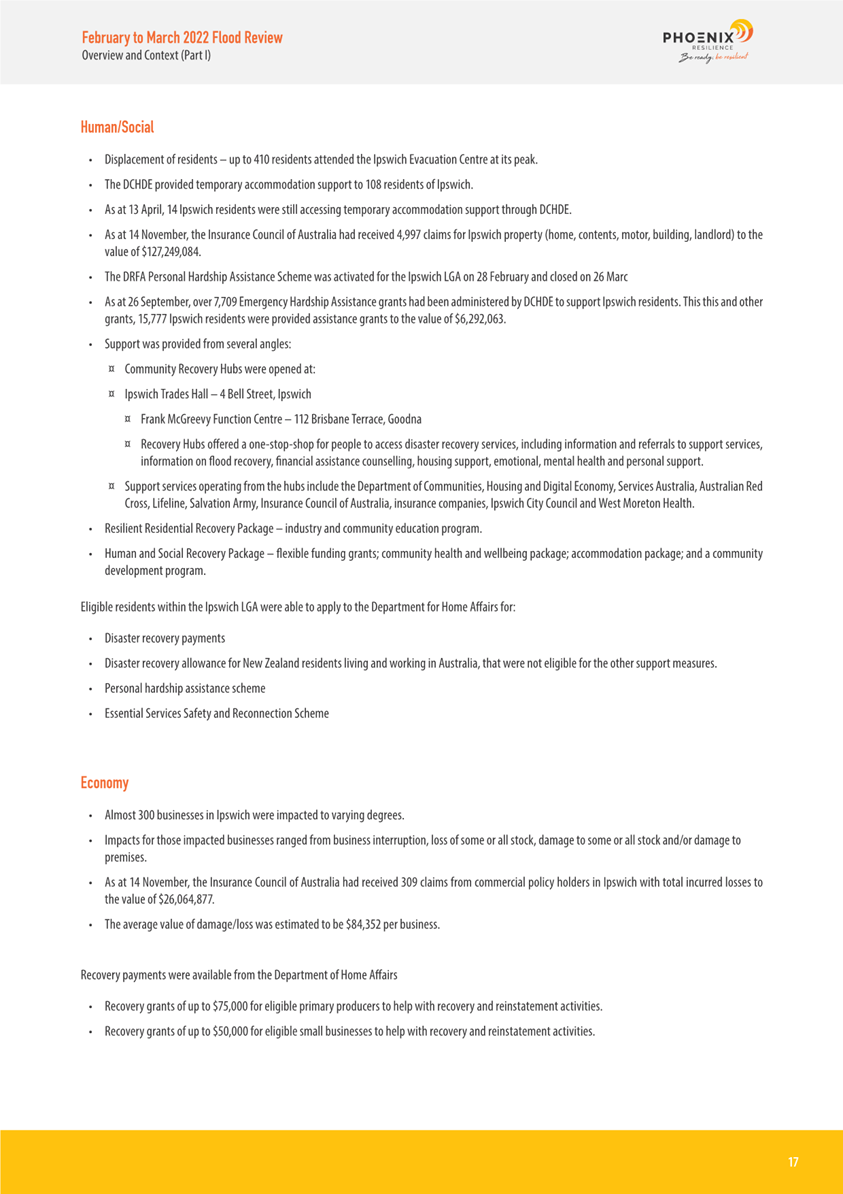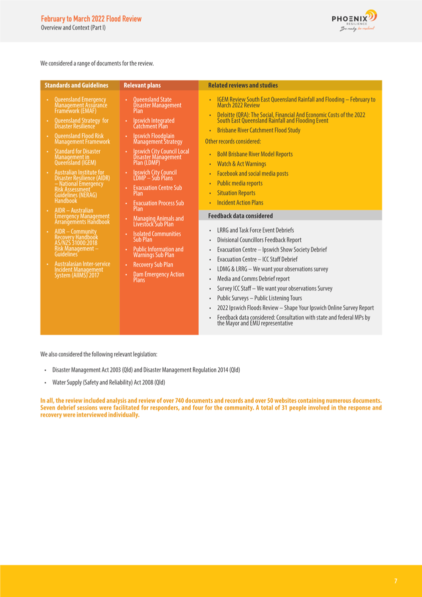 · Phoenix Resilience Pty Ltd – analysed all relevant information, undertook consultation with key stakeholders and produced the final report