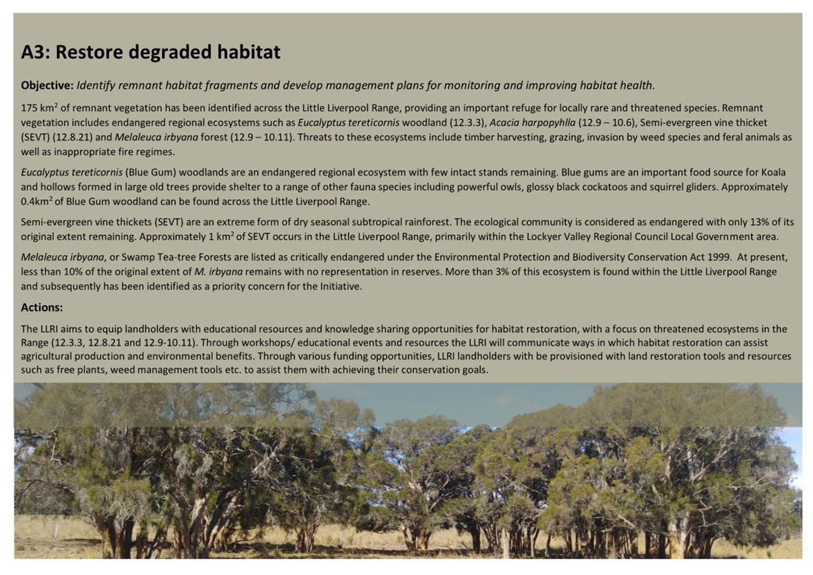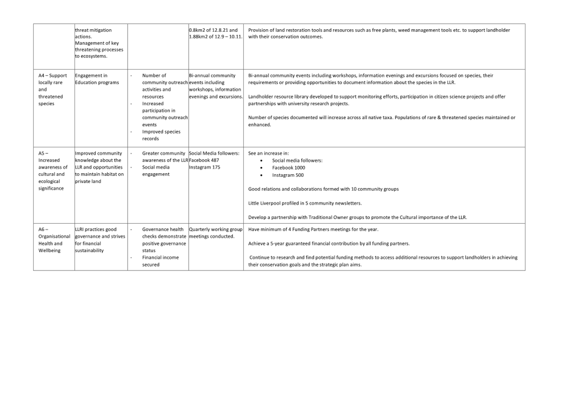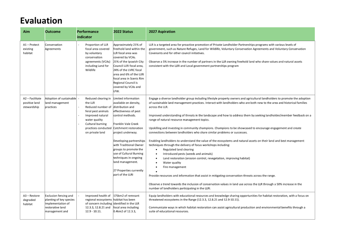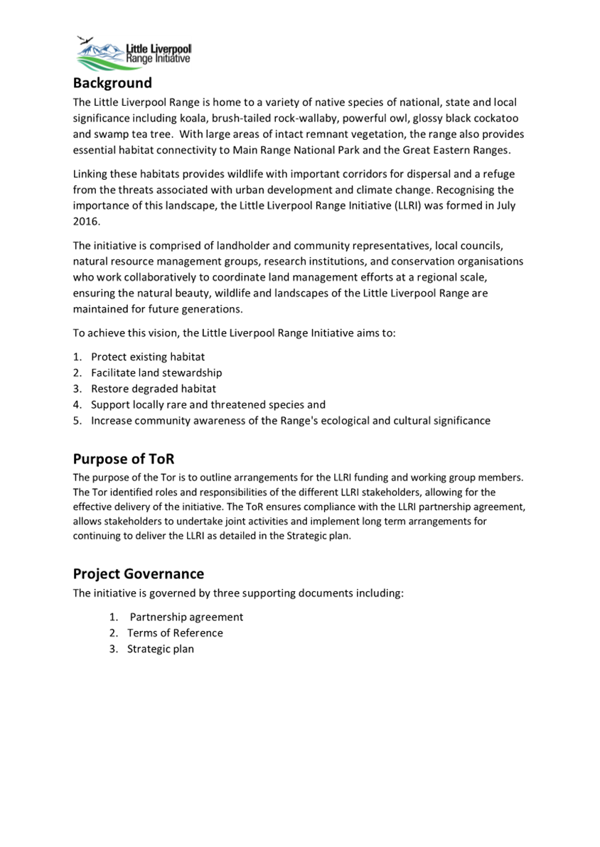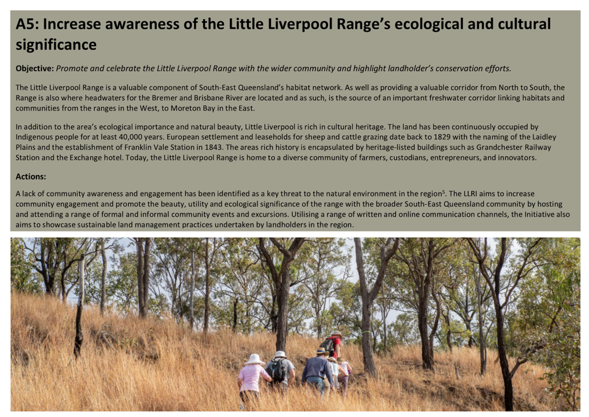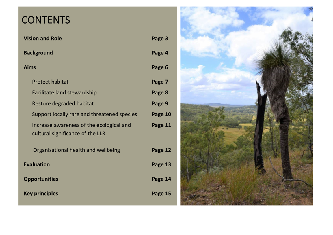 Little Liverpool Range Initiative Strategic Plan (attachment 1) provides guidance and outlines a vision and key objectives to facilitate on-ground stewardship which include the following and is further detailed in Attachment 1 as: