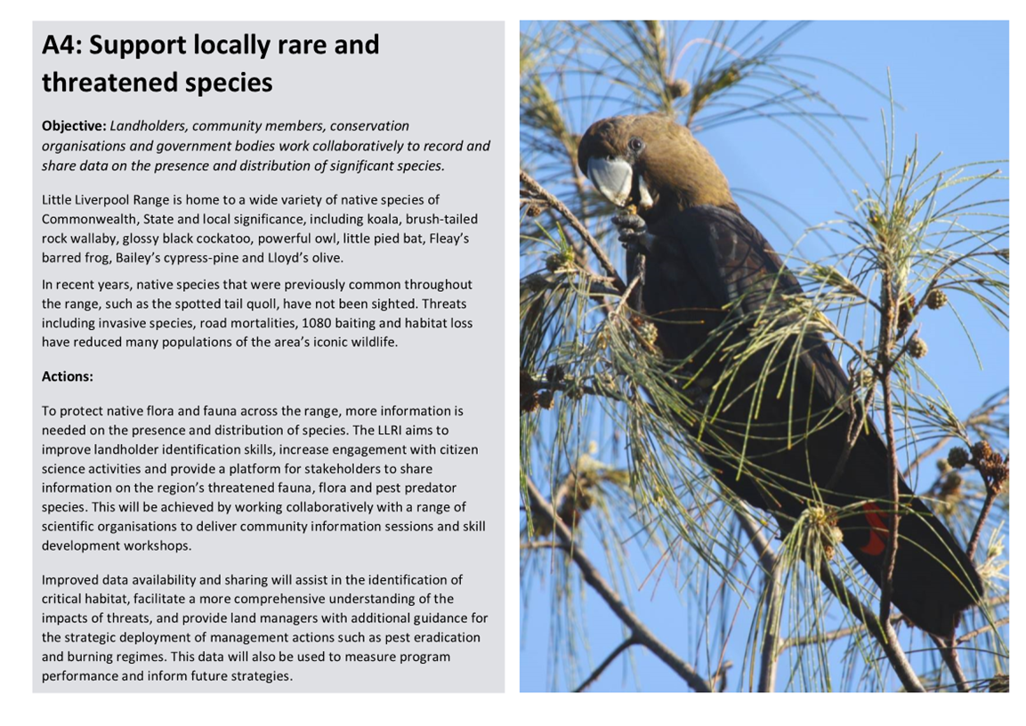 · Over 30 next boxes have been installed on private properties in the Range to support ecologically significant species including microbats, gliders, phascogales, powerful owls and glossy black cockatoos