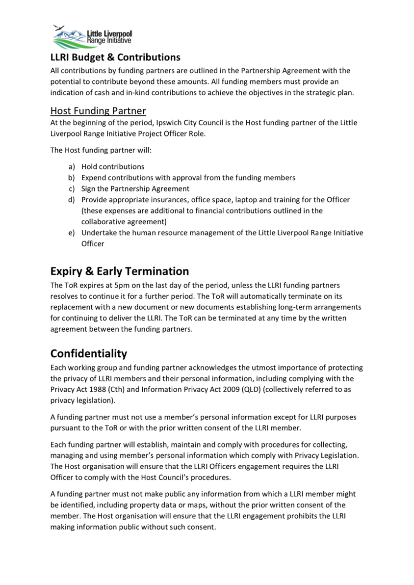 In recognition of the Initiative’s natural growth, governance documentation was established and has been revised to ensure consistent and stable strategic delivery of support to landholders could be managed and maintained in a clear and transparent way.