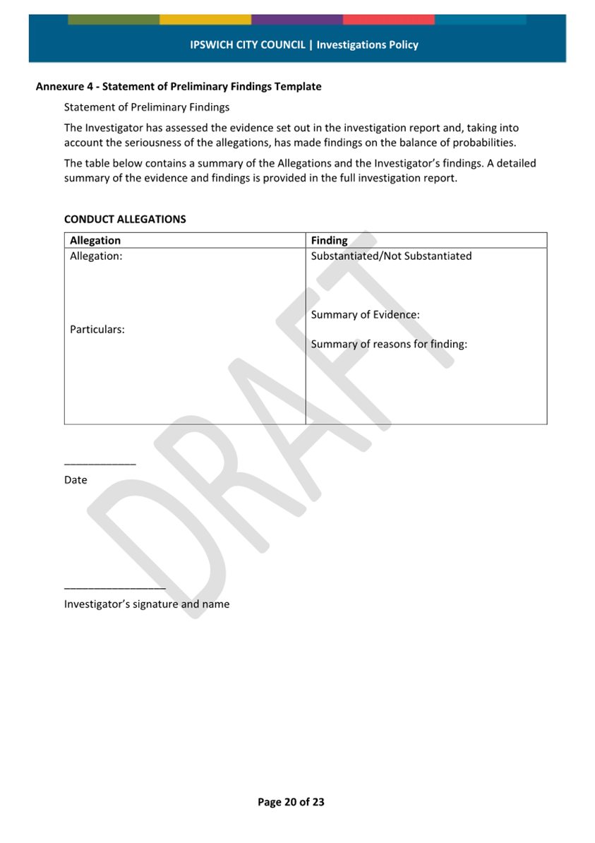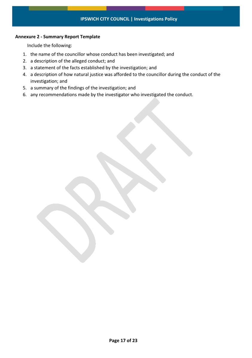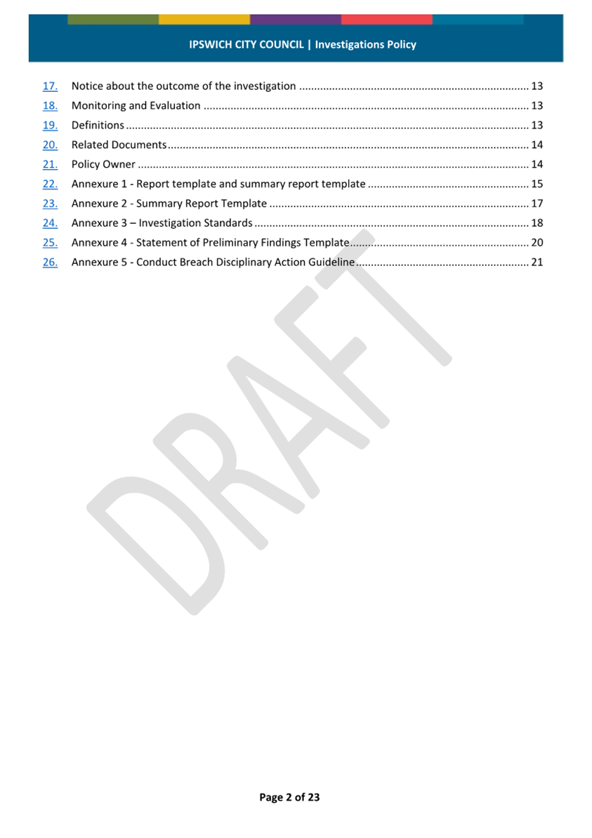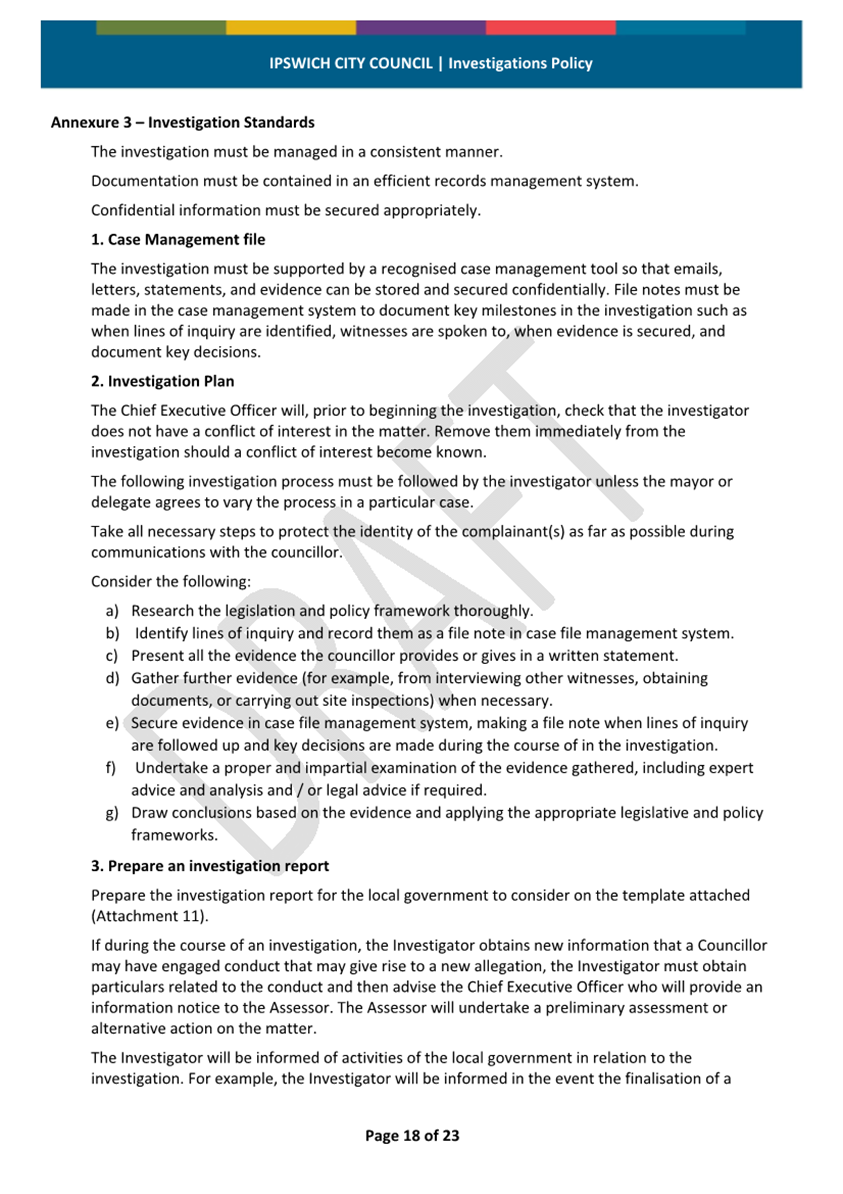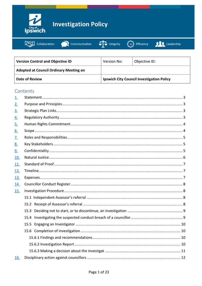 Minutes Attachment 2 - Investigation Policy - Updated Investigation Policy - clean copy.......................................... 53