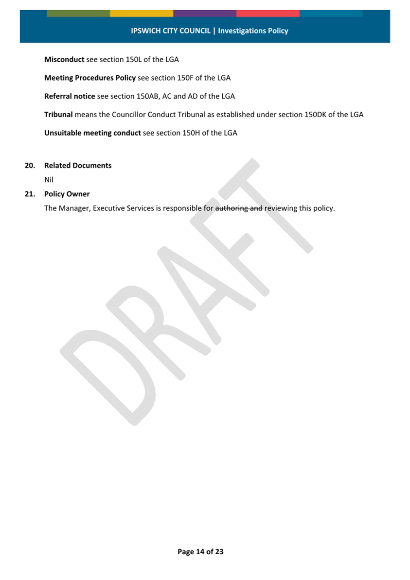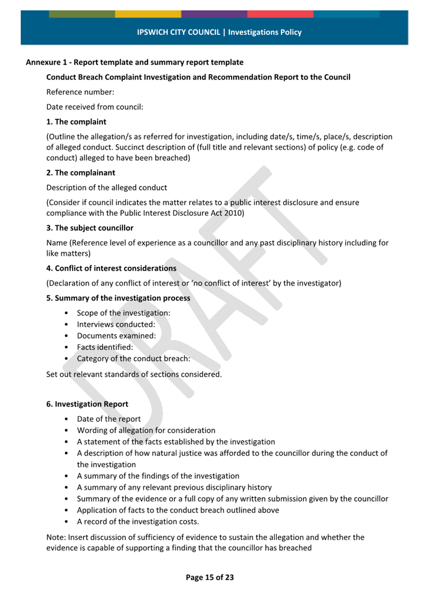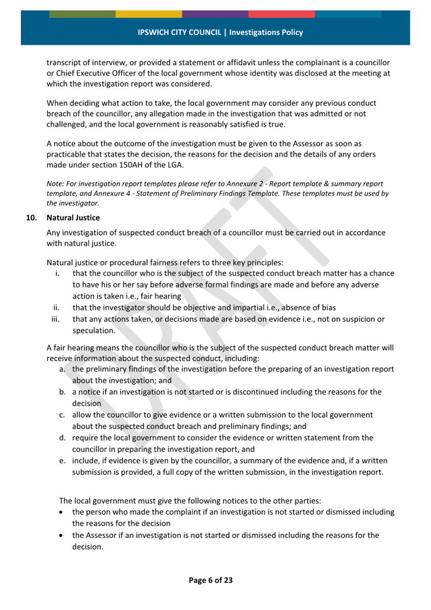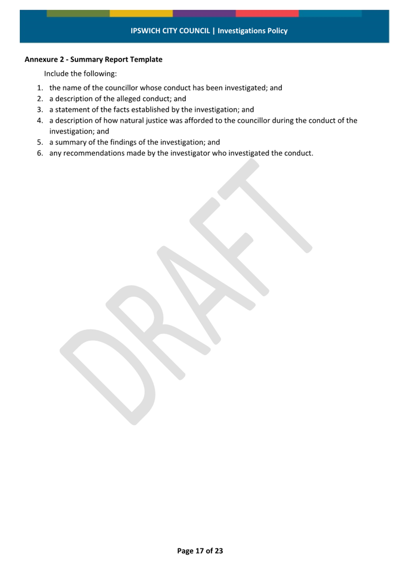 Minutes Attachment 2 - Investigation Policy - Updated Investigation Policy - clean copy.......................................... 53