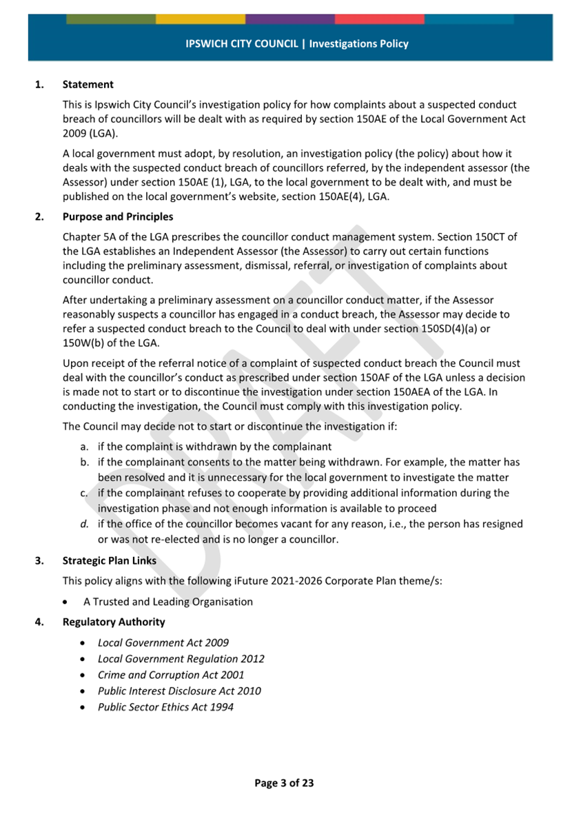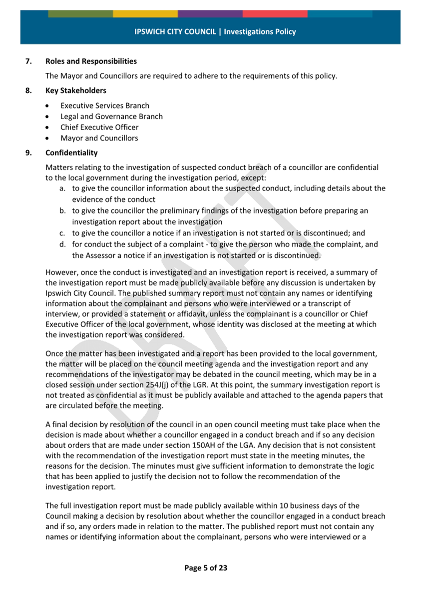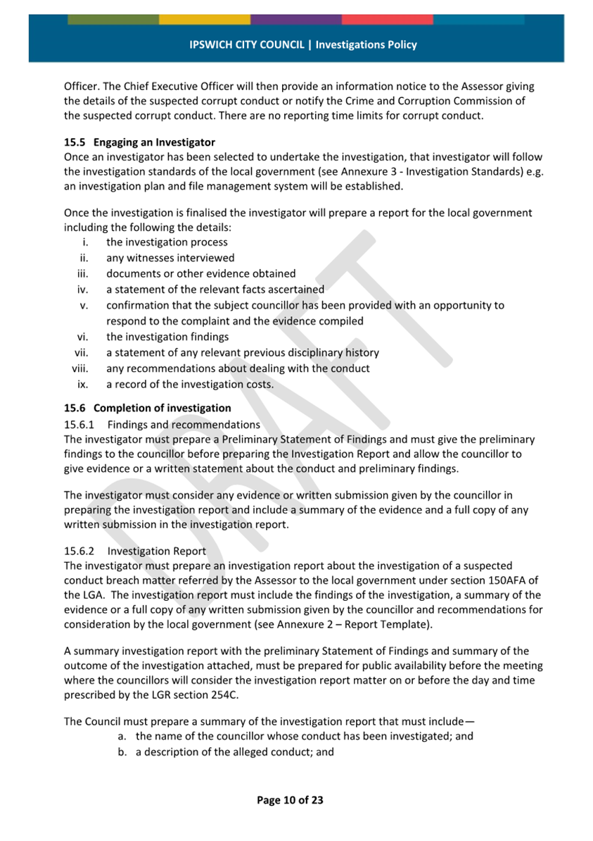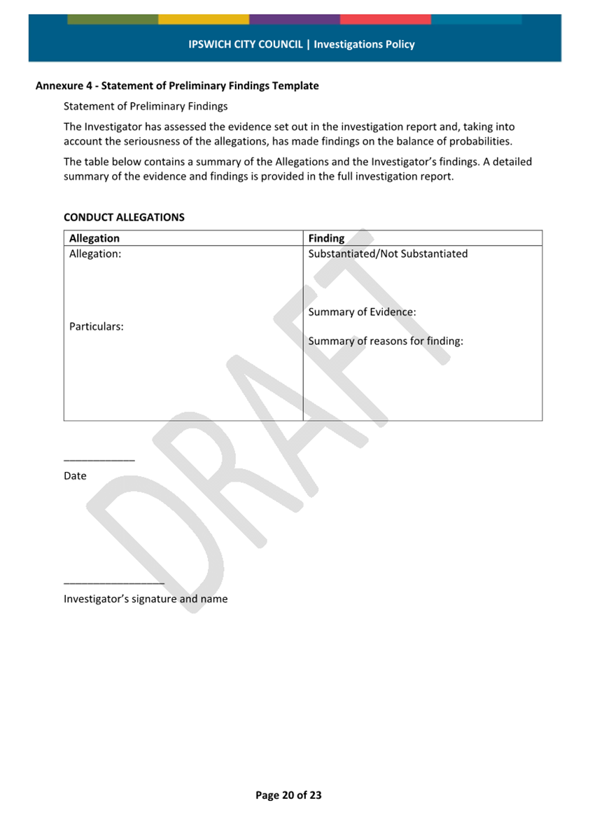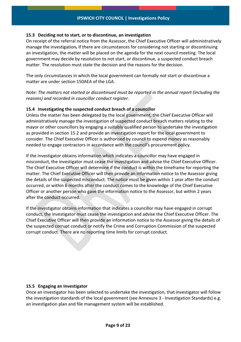 Minutes Attachment 2 - Investigation Policy - Updated Investigation Policy - clean copy.......................................... 53