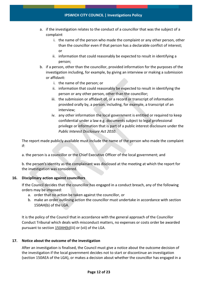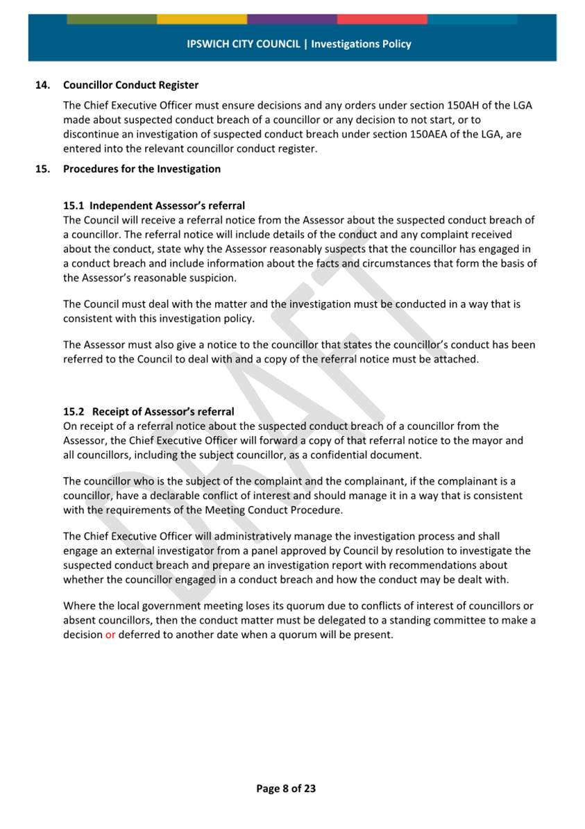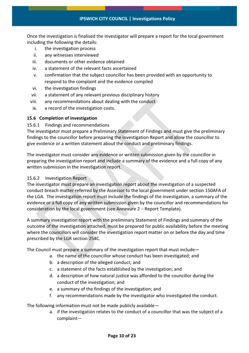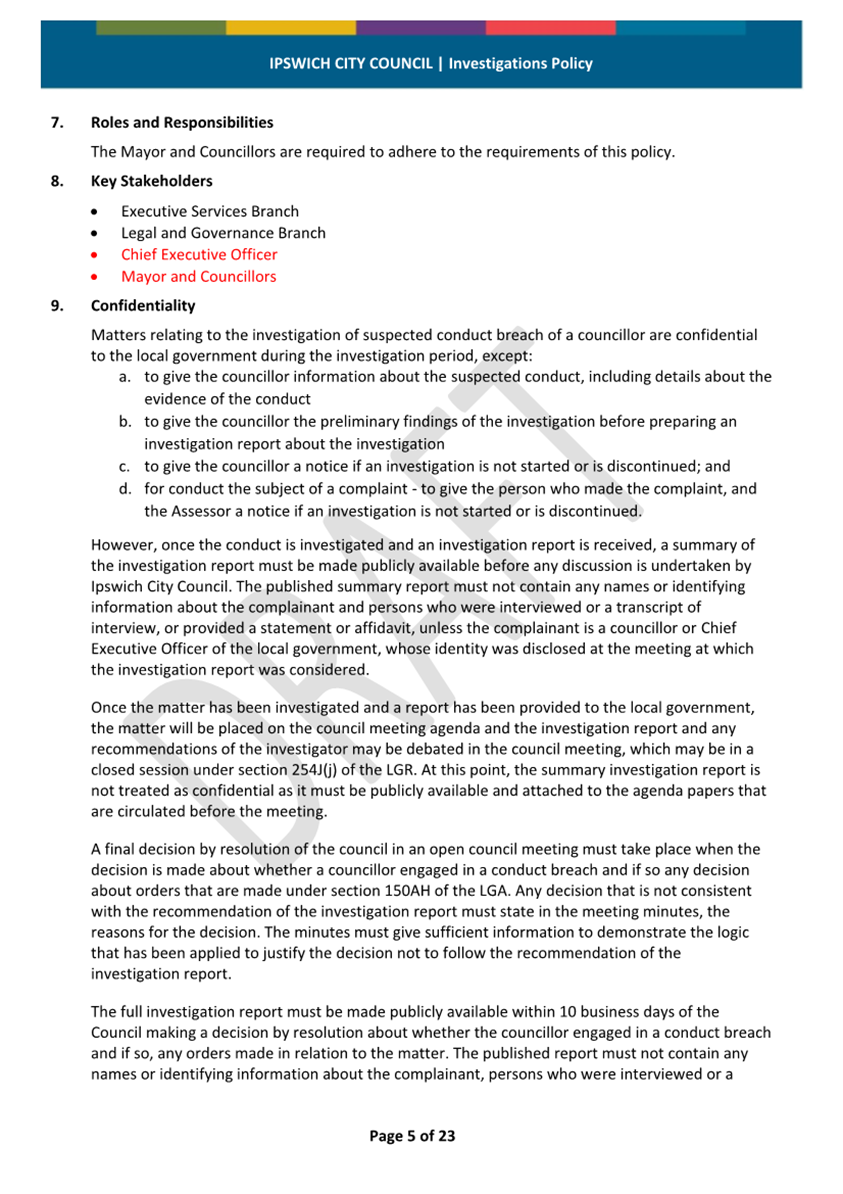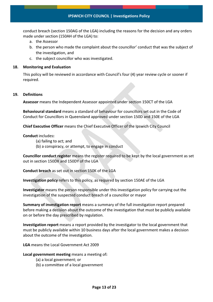 Minutes Attachment 2 - Investigation Policy - Updated Investigation Policy - clean copy.......................................... 53