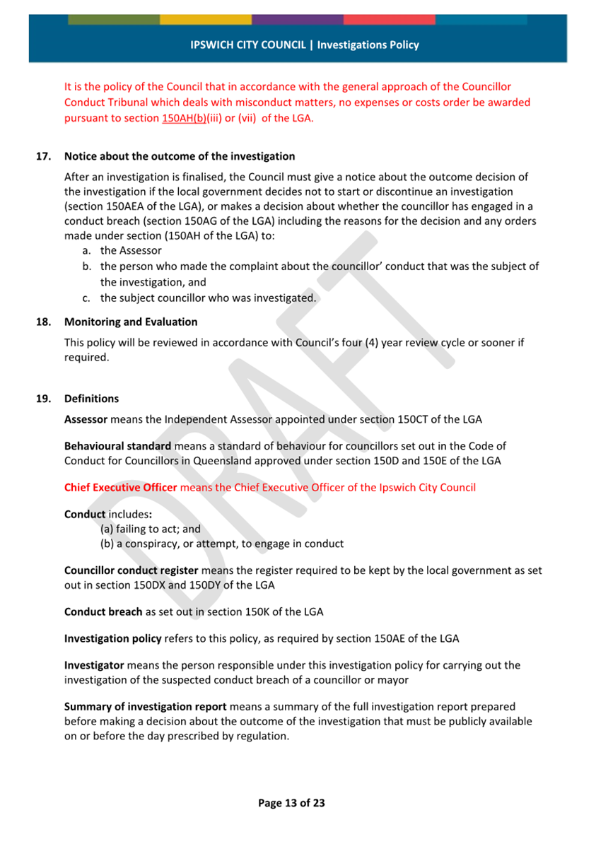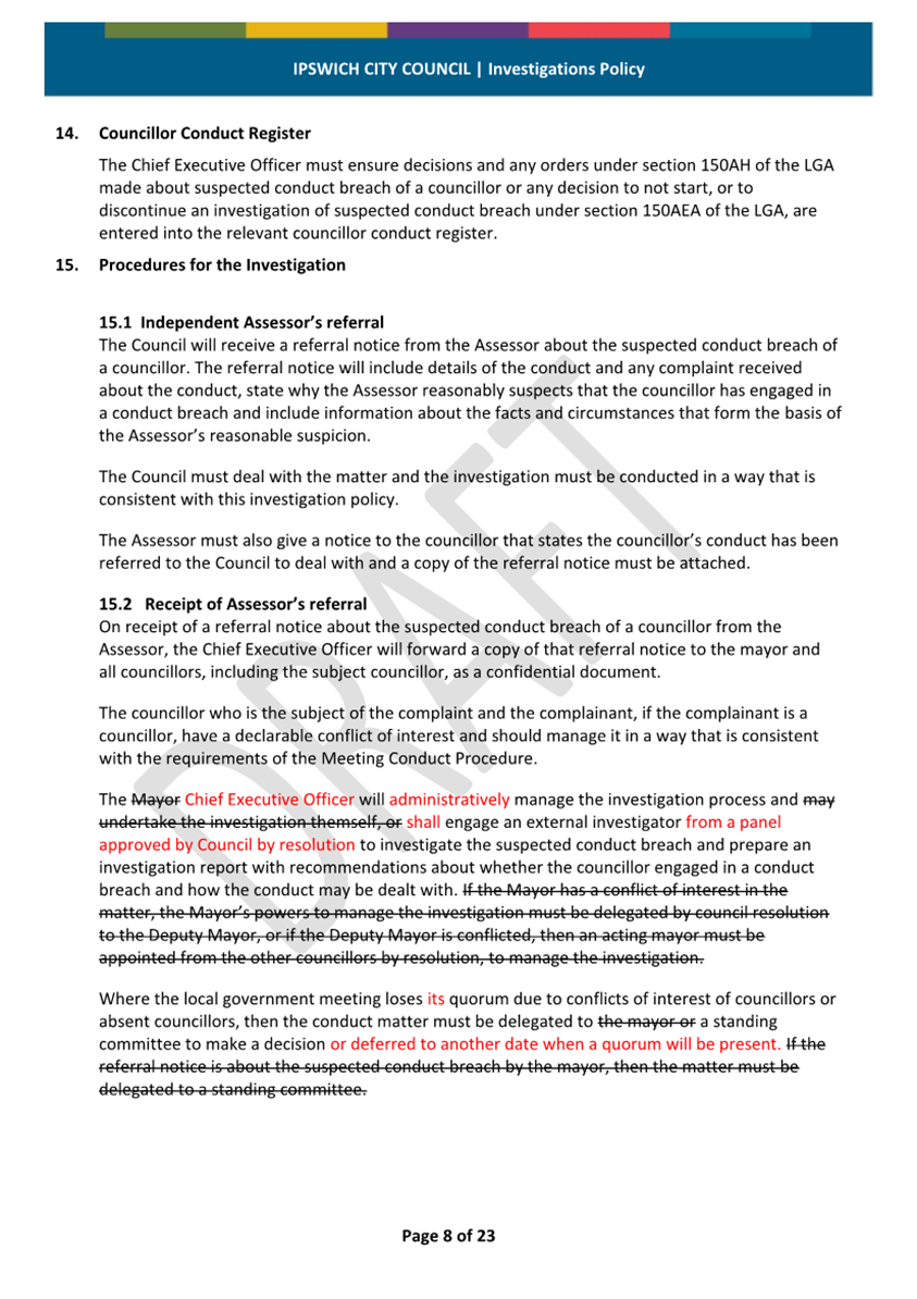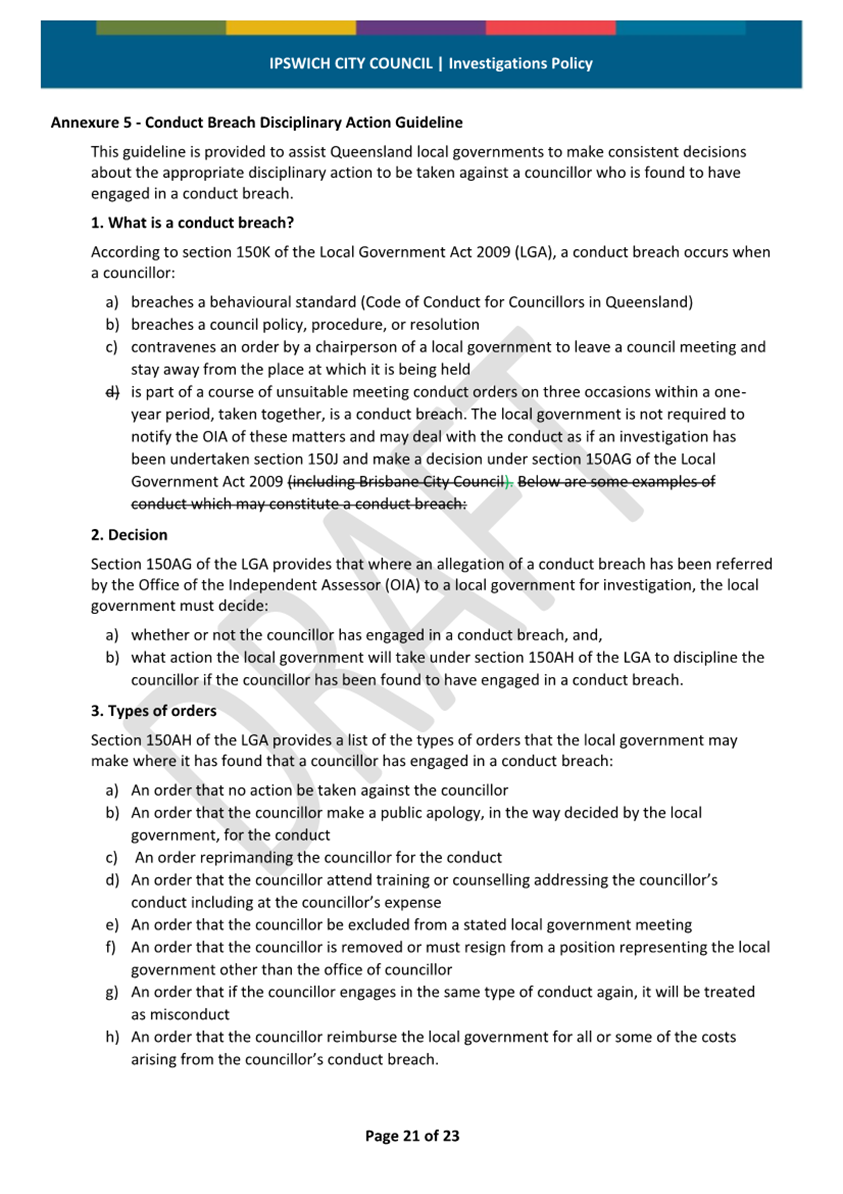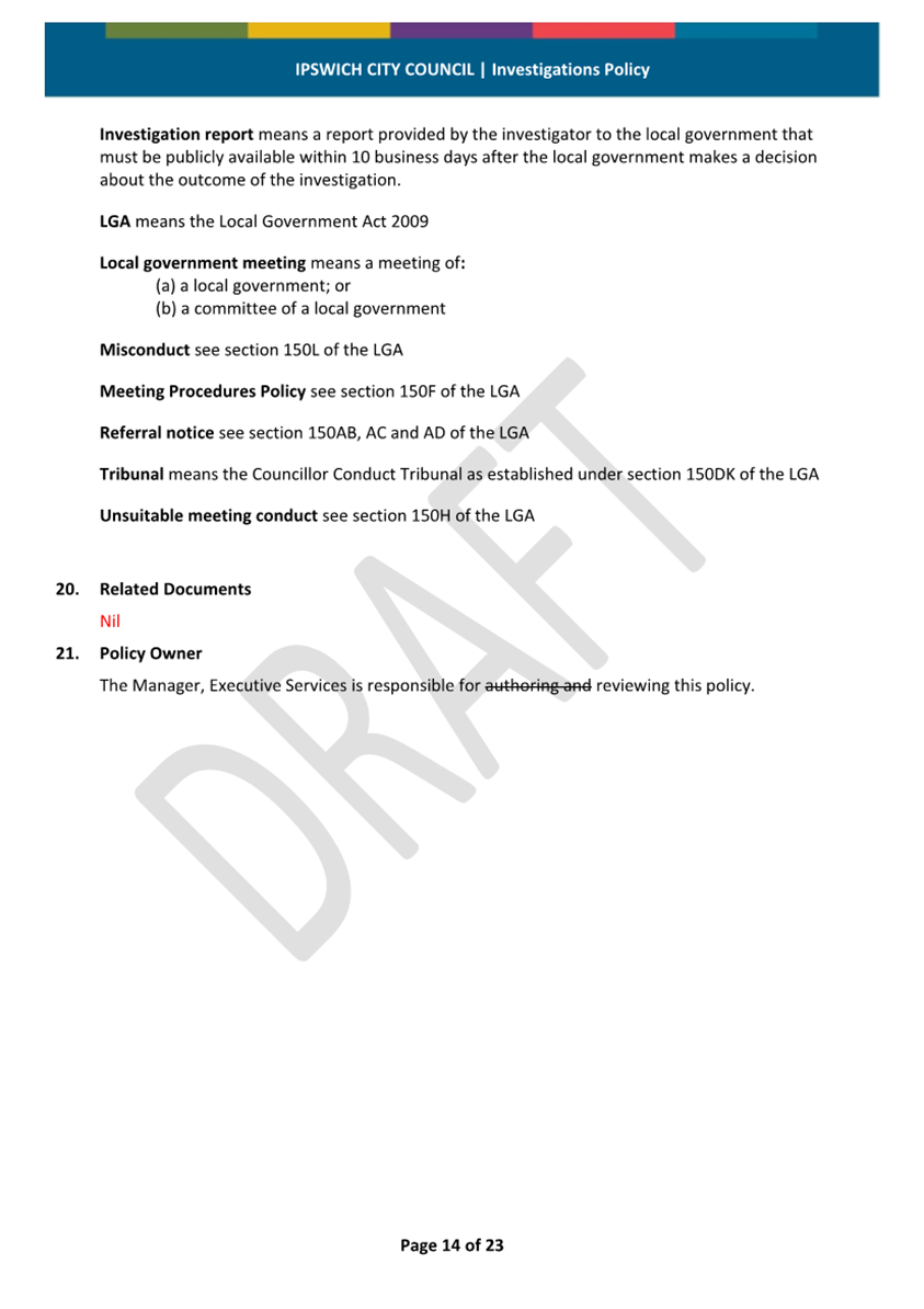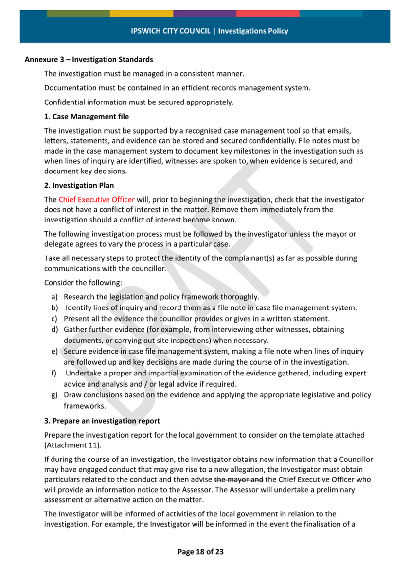 Minutes Attachment 1 - Investigation Policy - Updated Investigation Policy - track changes..................................... 30