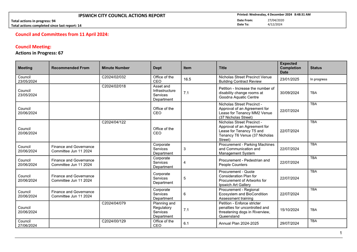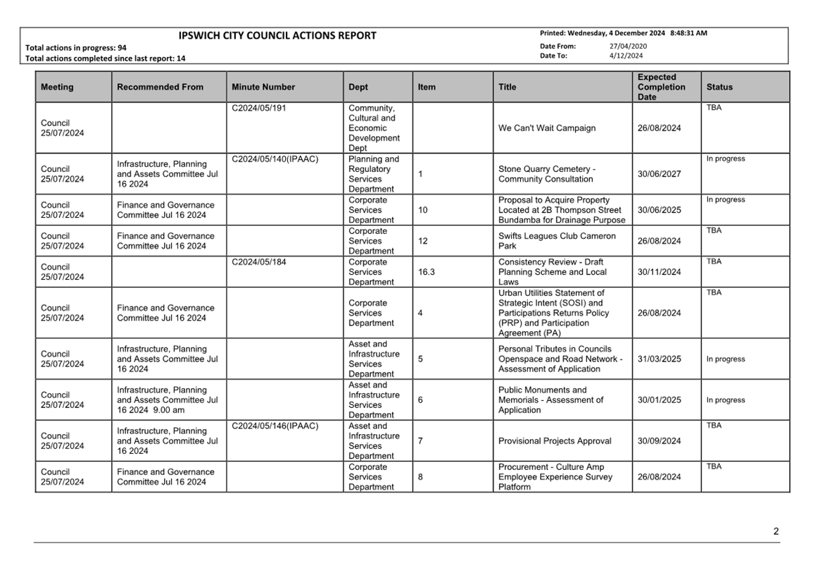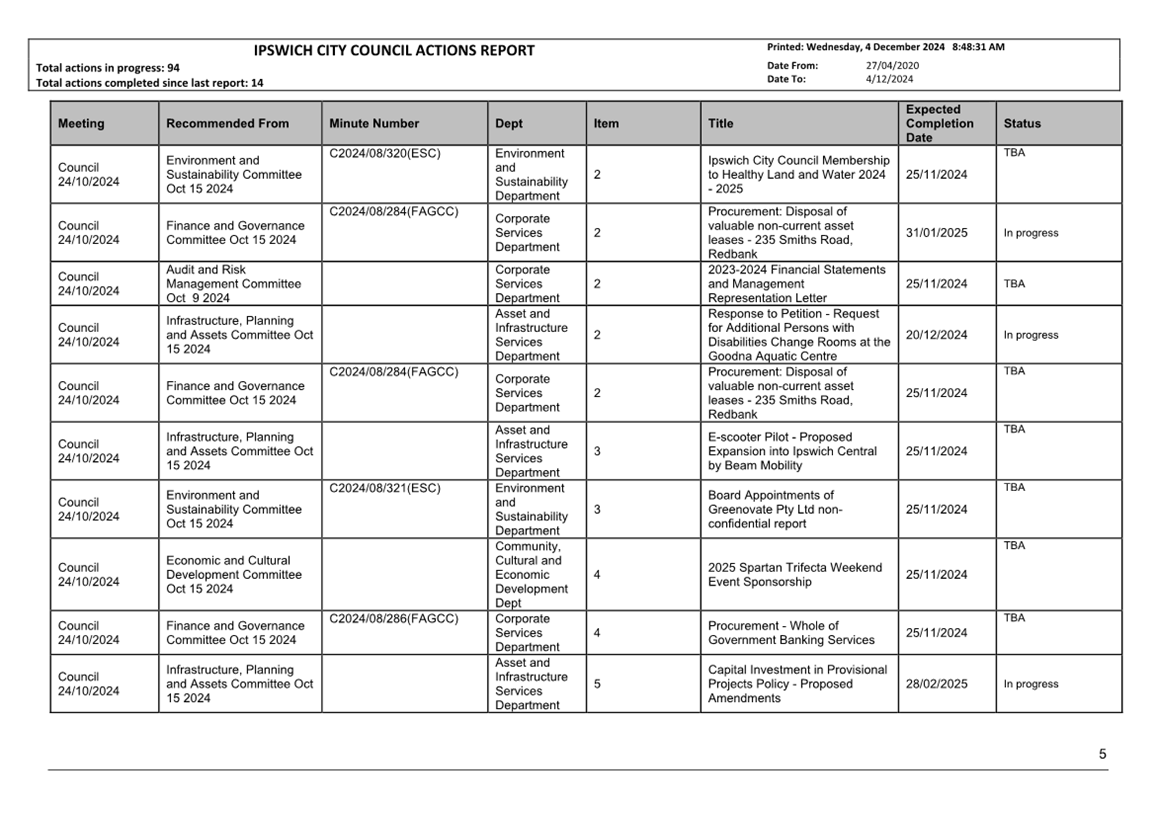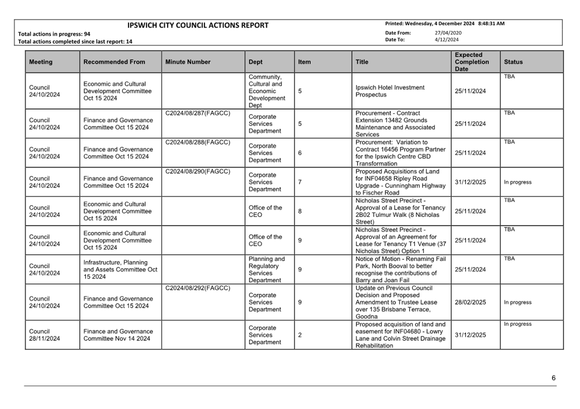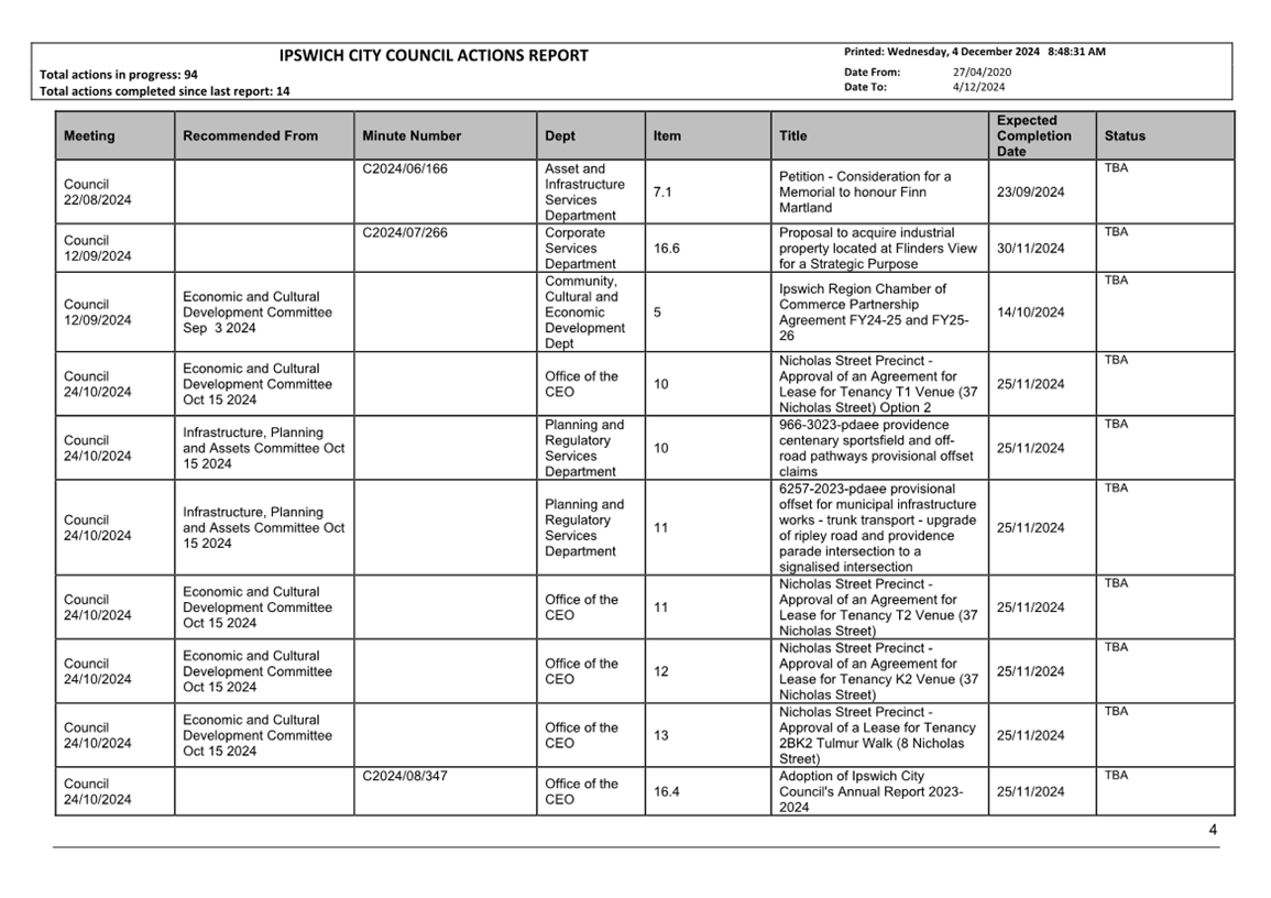 Actions Report as at 4 December 2024 ⇩ |
