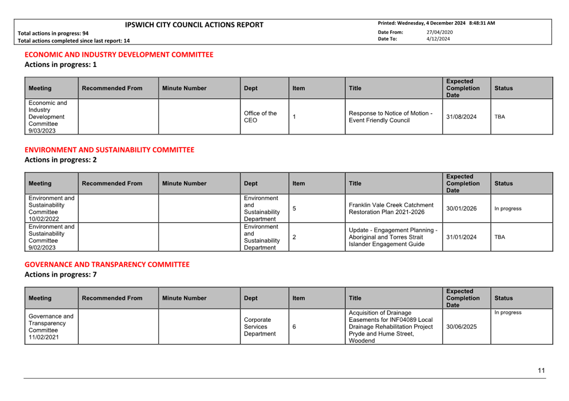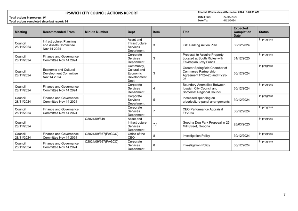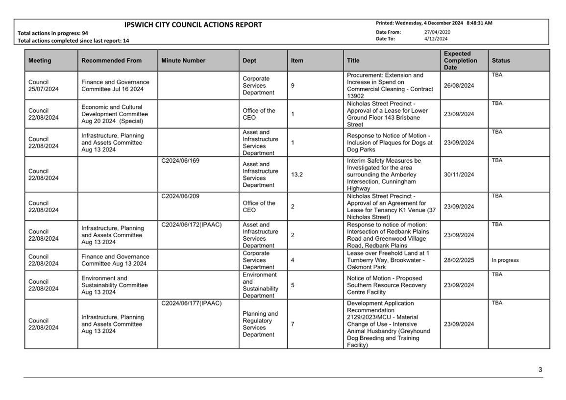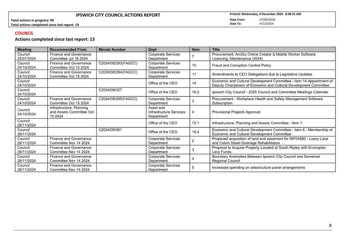 Actions Report as at 4 December 2024 ⇩ |