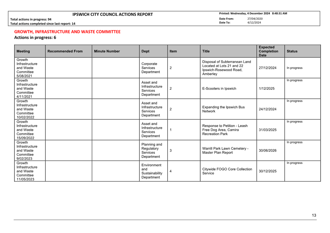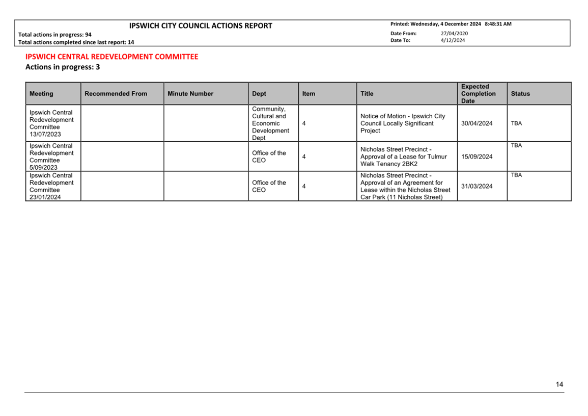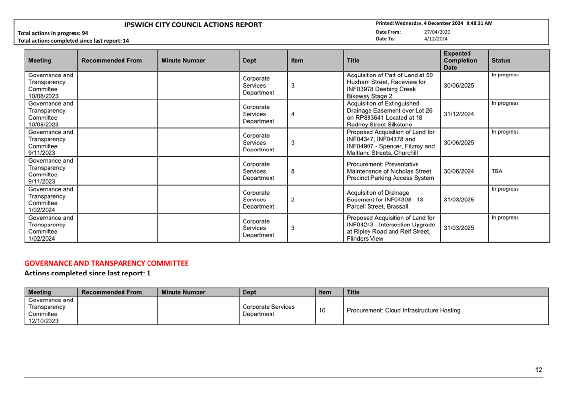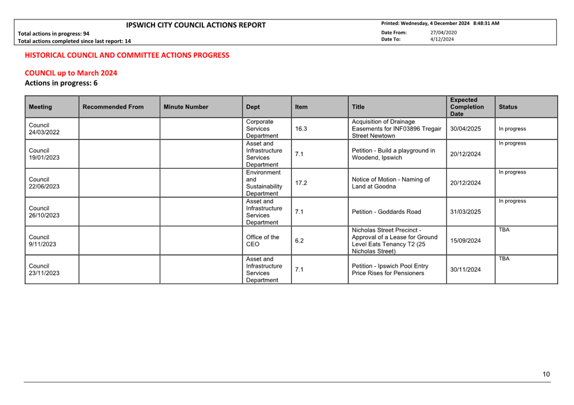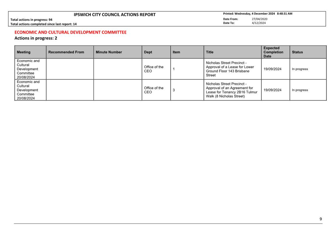 Actions Report as at 4 December 2024 ⇩ |