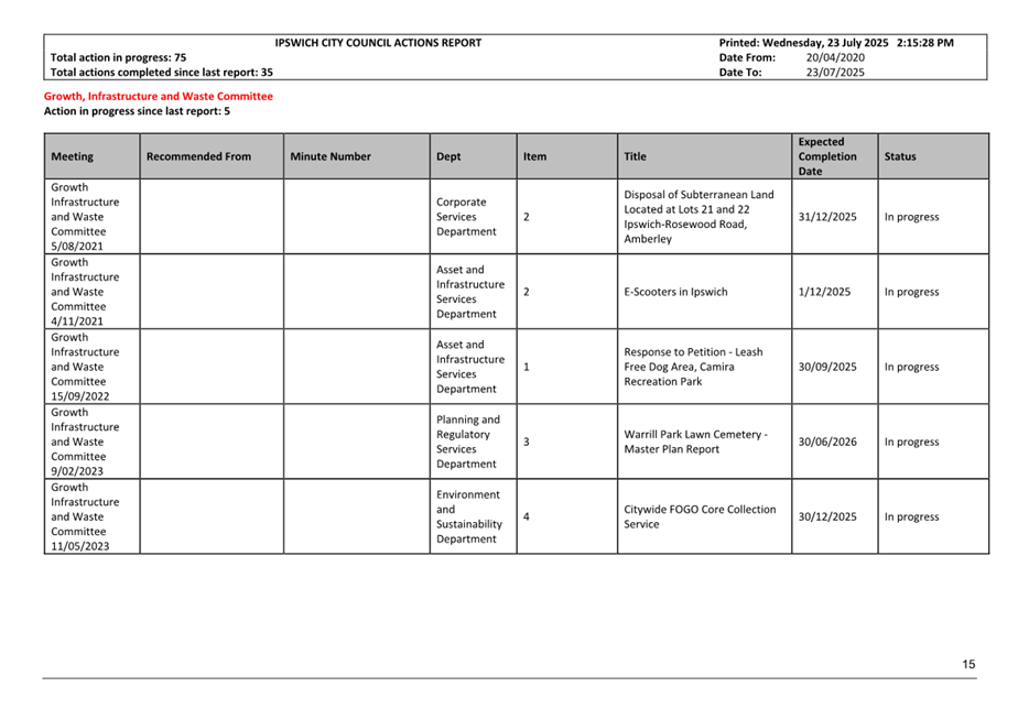 12.1. Ipswich City Council - Minutes of Meeting of 19 June 2025........................ 15